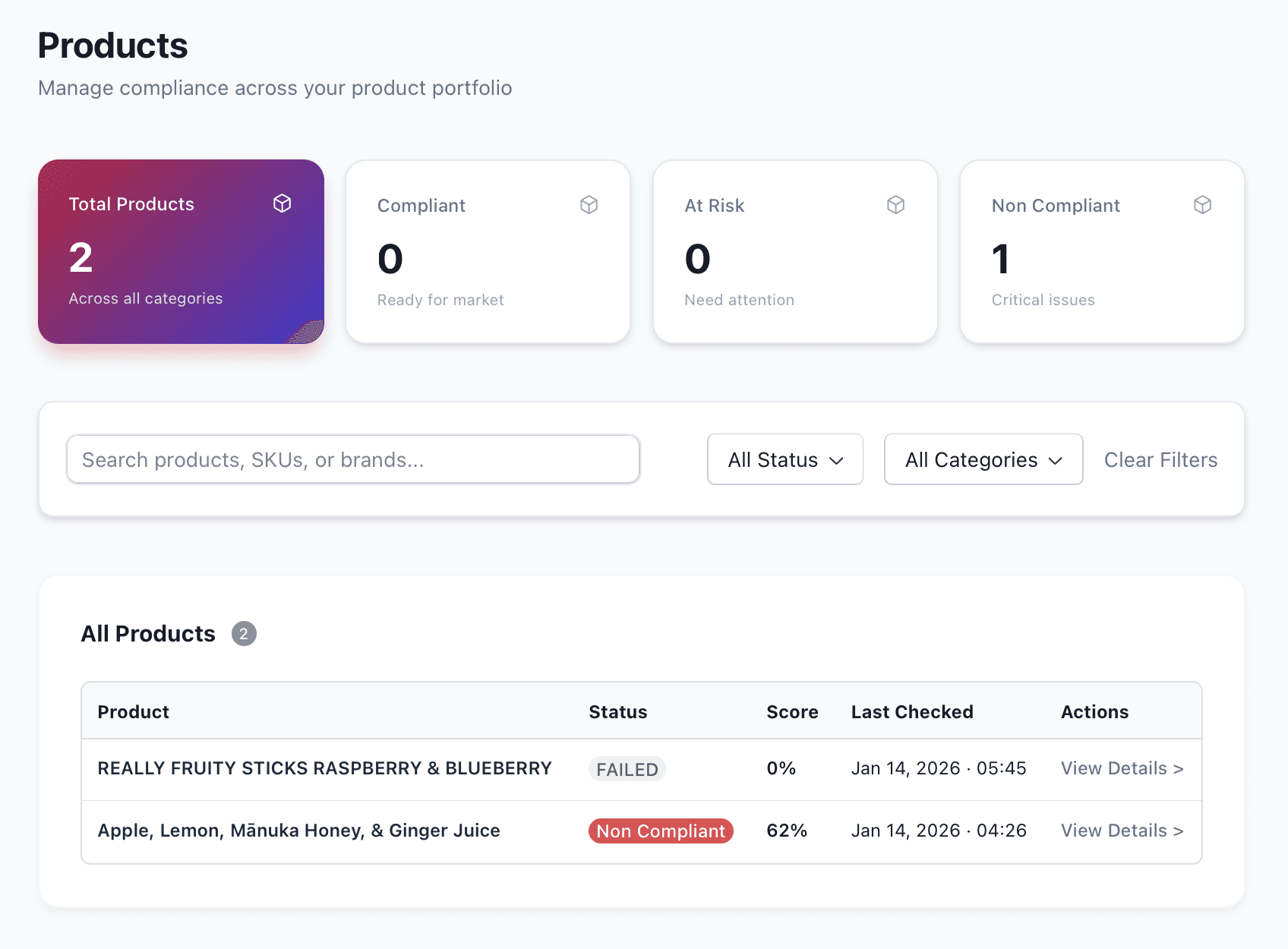 Screen supplier catalogs instantly for regulatory alignment, labels, and claims. Protect your brand while onboarding faster.